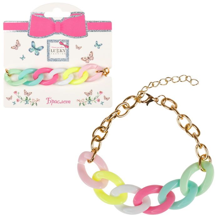 Lukky Fashion браслет из цвет.матового пластика:пастельно-радужный микс, карта