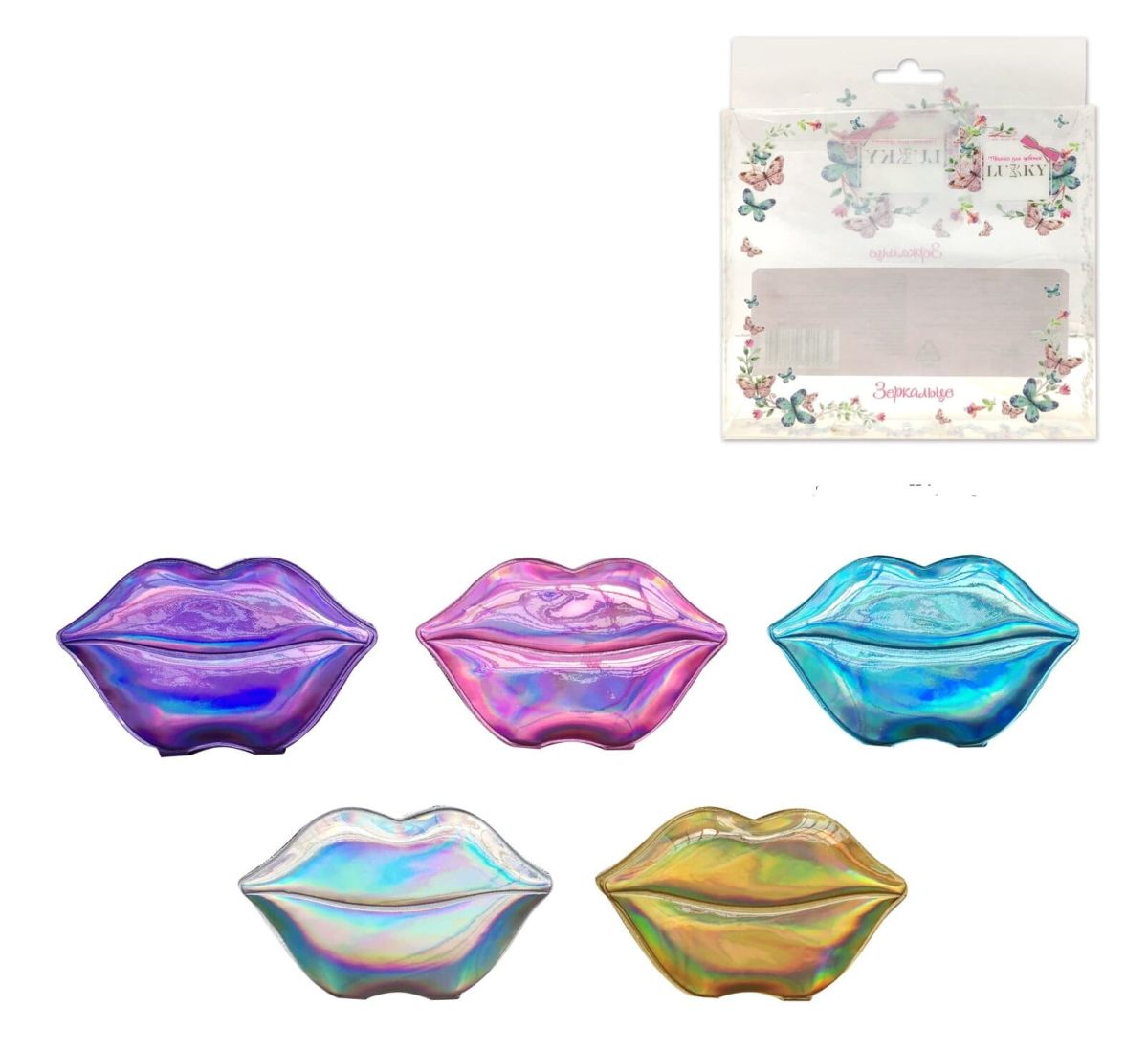 Lukky зеркальце карманное «Губы»,голография,5 цв.,кор.ПВХ