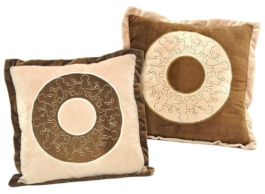 Подушка "Хоровод" называется так неспроста. На ней вышит рисунок обезьянок идущих друг за другом внутри рисунка-круга. Каждая обезьянка держит предыдущую за хвост. Подушка станет прекрасным сувениром !