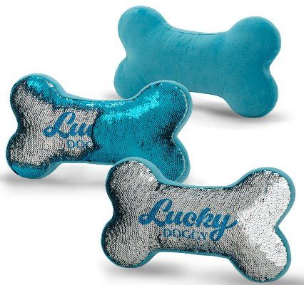 Весёлая компания собачек Lucky Doggy отличается прекрасным вкусом, креативностью и изысканным чувством юмора, так что нету ничего удивительного в том, что именно они изобрели для вас уникальную гламурно-медитативную подушку в форме косточки! Она покрыта сверкающими чешуйками, которые так приятно проглаживать рукой в разные стороны, наблюдая, как подушка меняет цвет и наслаждаясь слегка щекочущими ощущениями в пальцах и ладонях – настоящий релакс и умиротворение! Расслабляет не хуже, чем «лопанье» пузырьков на полиэтиленовой плёнке!
